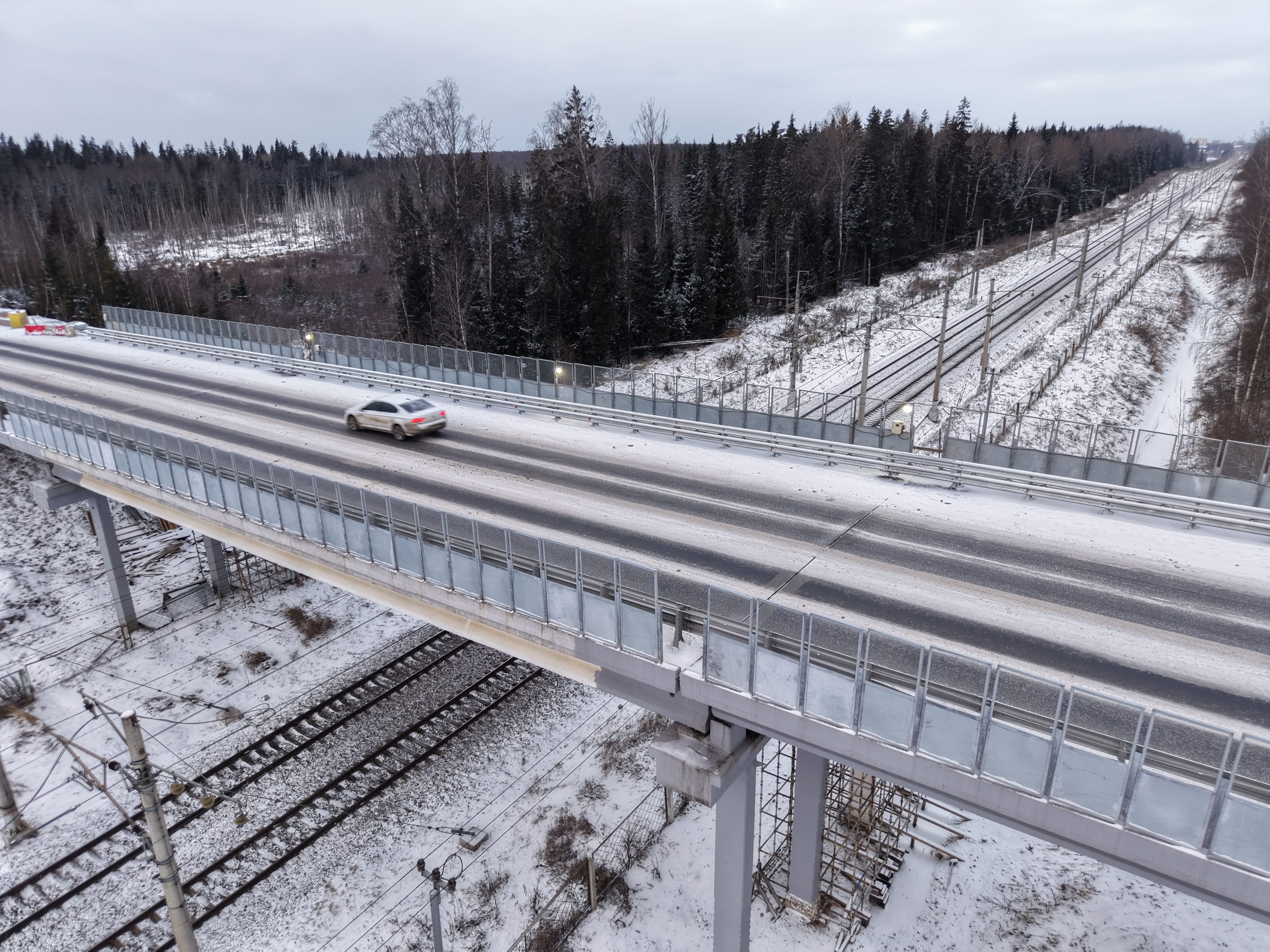 В городском округе Солнечногорск Московской области запущено рабочее движение транспорта по путепроводу через железнодорожные пути на Обуховском шоссе. Капитальный ремонт проведен благодаря нацпроекту «Инфраструктура для жизни», протяженность объекта ― 90 пог. м.